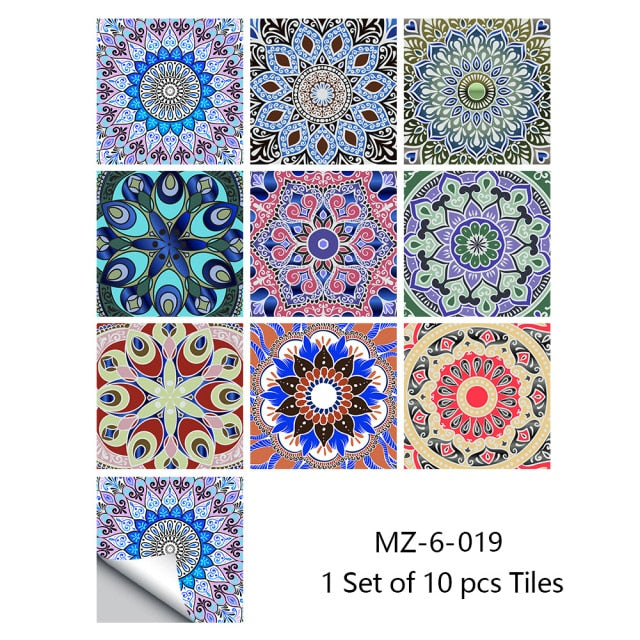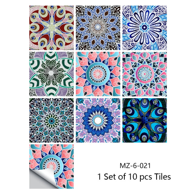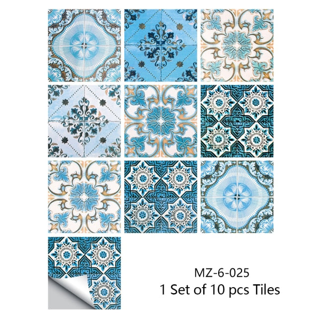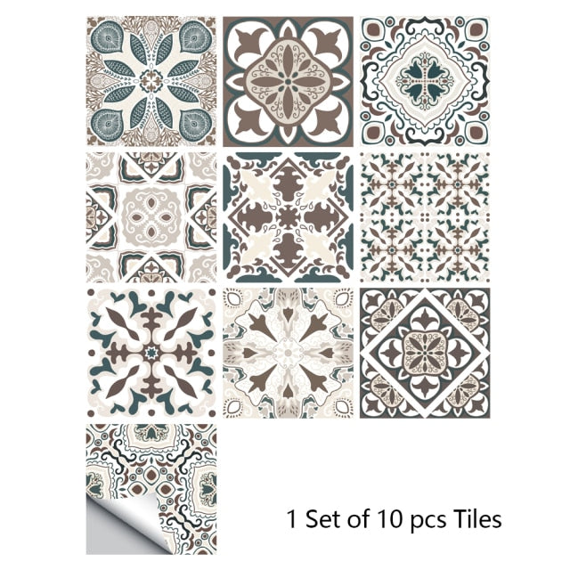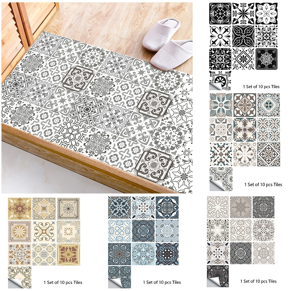 10pcs Gray Retro Pattern Matte Surface Tiles Sticker Transfers Covers for Kitchen Bathroom Tables Floor Hard-wearing Wall Decals