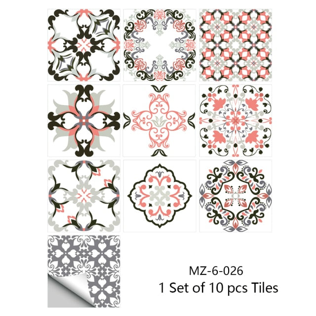 • Load image into Gallery viewer, 10pcs Gray Retro Pattern Matte Surface Tiles Sticker Transfers Covers for Kitchen Bathroom Tables Floor Hard-wearing Wall Decals